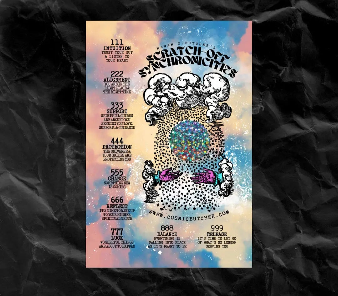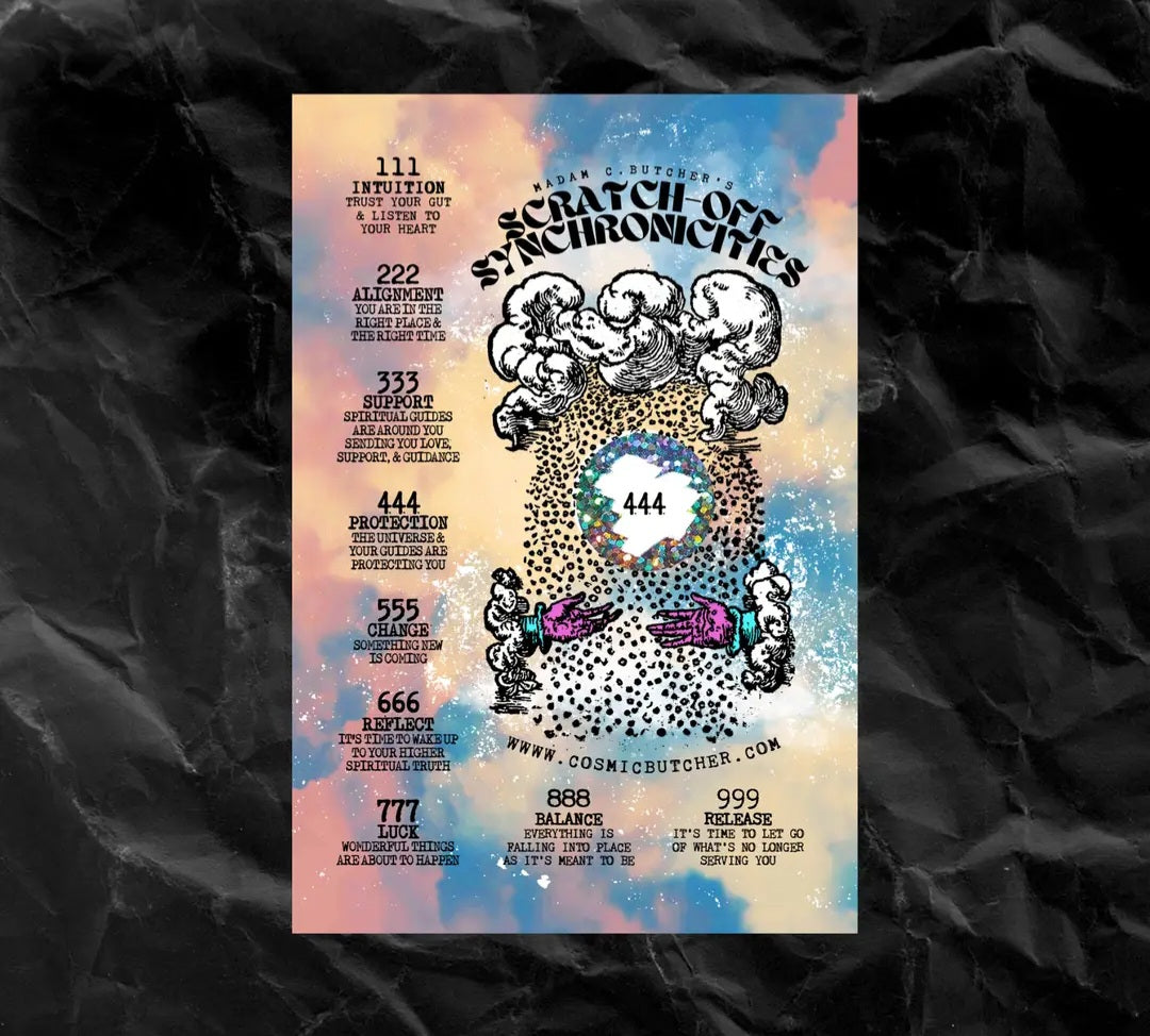 4x6" Scratch Off style Card that doubles a mini art print featuring different symbols as possible outcomes